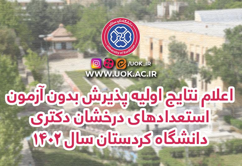 اعلام نتایج اولیه پذیرش بدون آزمون استعدادهای درخشان دکتری دانشگاه کردستان سال 1402